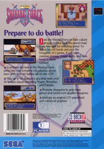 Shining Force CD was a 1994 strategy role-playing game developed by Sonic! Software Planning for the Sega CD, and a remake of the games Shining Force Gaiden and Shining Force Gaiden II that were originally for the Game Gear. It was released in North America on March 22nd, 1995.