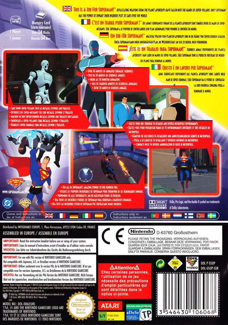 Superman: Shadow of Apokolips was a video game that was released on the Nintendo GameCube in North America, on March 26th, 2003. It is based on DC Comics’ flagship character Superman and the television series Superman: The Animated Series.