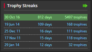In October of 2016, something fun happened by complete accident. See, I am a 5+ year member at truetrophies.com, a really cool website for trophy hunters to keep track of trophies earned, games completed, gaming goals, and…… trophy streaks apparently. What a streak means is basically this: earned at least one trophy every day, every single day in a row. Never miss a day, and boom! You are now on a trophy streak. This wasn’t something I was even trying to do, I was just playing some games! However on October 30th, 2016 I unknowingly started a trophy streak. A streak that is still going to this day! As of this writing (1/19/19), I am on an 812 day in a row streak (including today), having earned 5,497 trophies along the way. That’s a ton of trophies to earn in a little over 2 years! Funny enough though, more than half of those were earned in just 2018 alone.