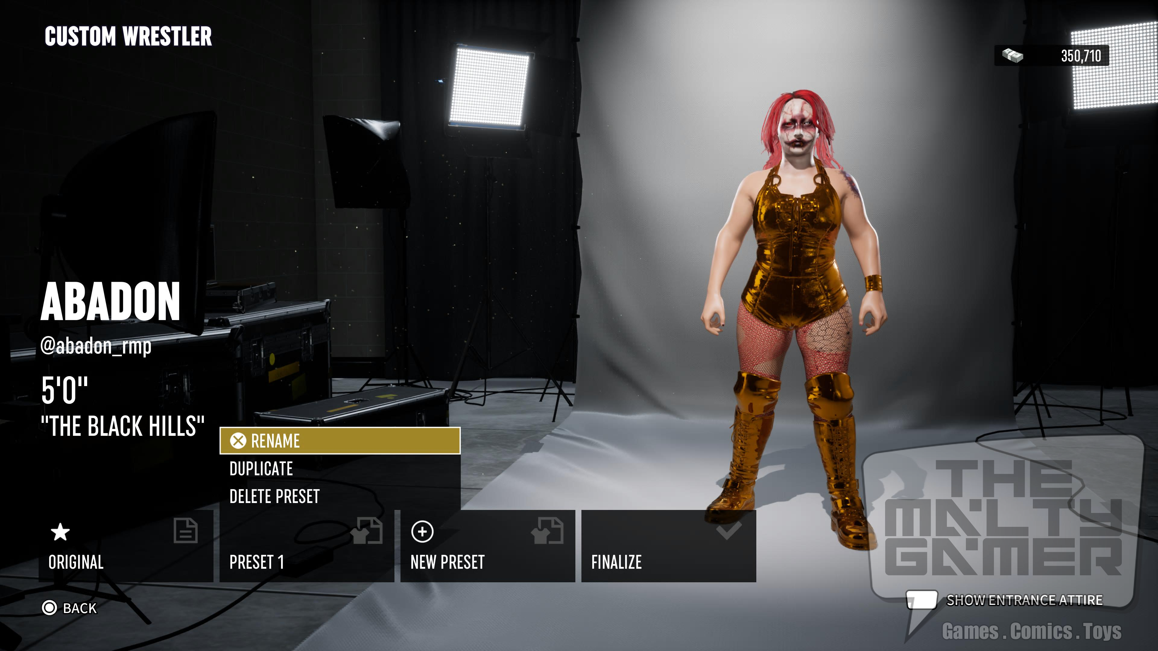 - Optional step: Name the preset costume. Highlight Preset 1, and go to options (square on PS5). Then select the rename option. I am choosing to just name this preset as Gold.